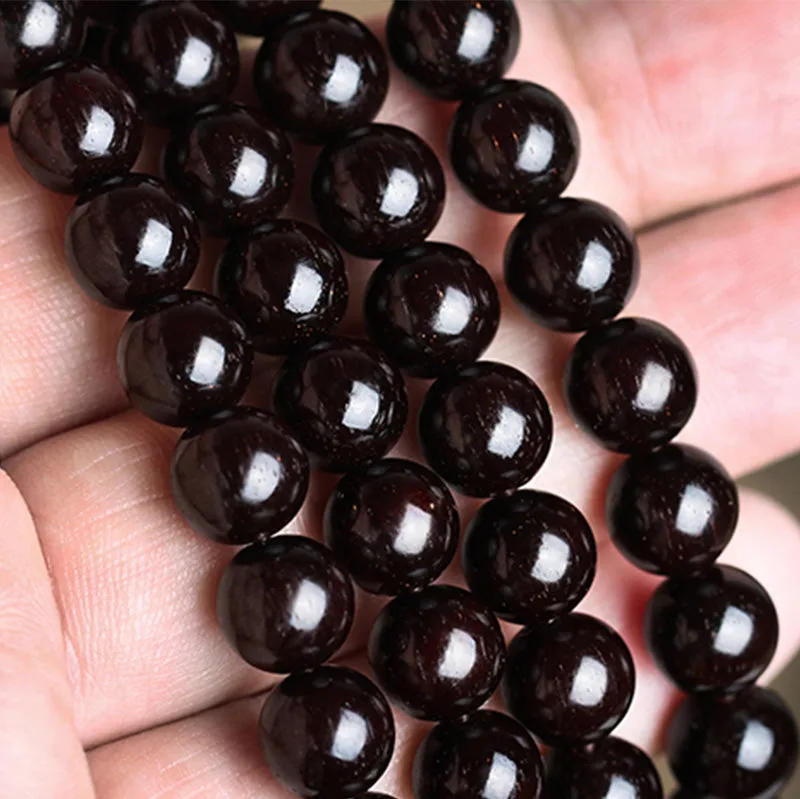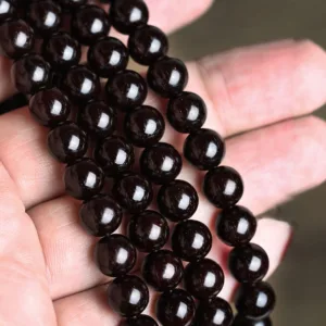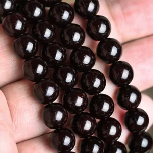 Small Leaf Red Sandalwood Beads made from tree roots are polished to look like black pearls. with high gloss. smooth bead bodies. reflective. and slightly fluorescent.