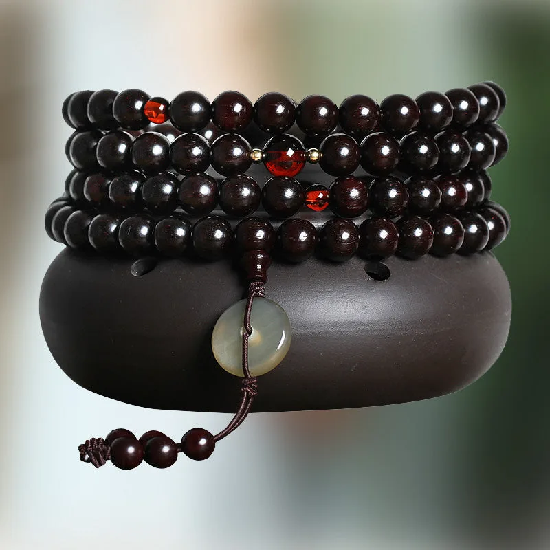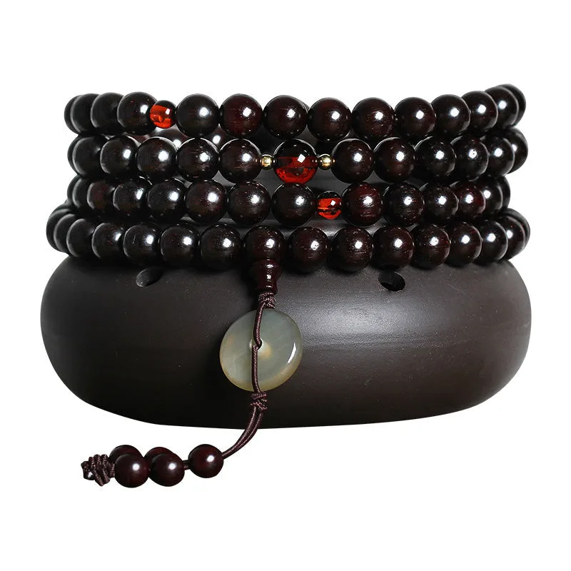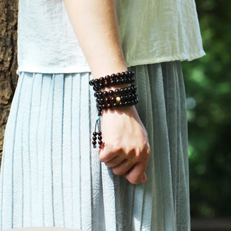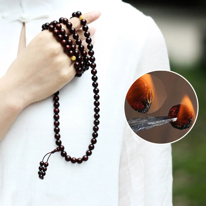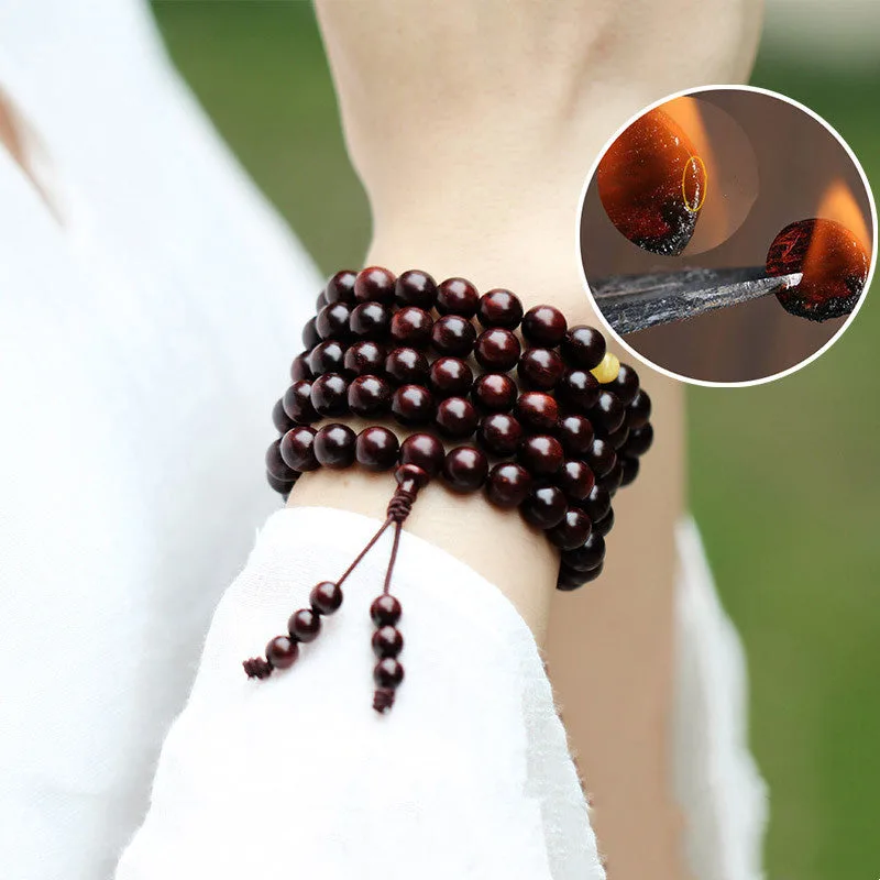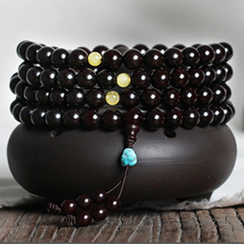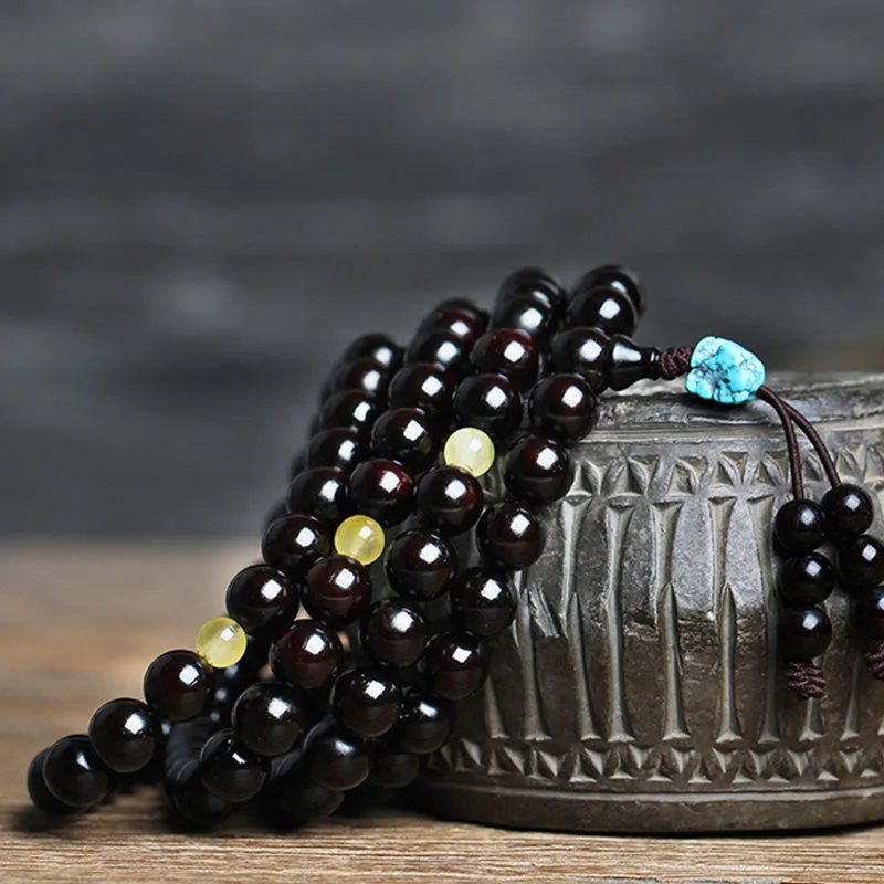 Mythstone 108 Mala Beads 4.8 Stars With Gold Star Indian Small Leaf Red Sandalwood Amber Turquoise Chinese Knotting Blessing Bracelet