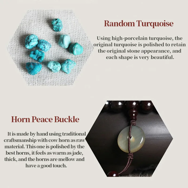 • Material: Small Leaf Red Sandalwood. Amber. Turquoise. Blood Amber. Natural Horns