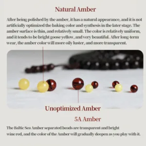 The Baltic Sea Amber separated beads are transparent and bright wine red. and the color of the Amber will gradually deepen as you play with it.