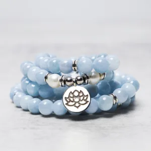 This108 Mala Beads Aquamarine Healing Braceletis made up of 108 high-quality aquamarine crystals with a circle as decoration every other distance for a more aesthetic look. The centerpiece is a selected aluminum product with alotus flower engraving. The beads are hand-grinded delicately from selected natural stones. This bracelet not only looks beautiful. but also has healing properties that canhelp calm the mind and enhance spiritual awareness.
