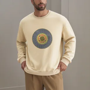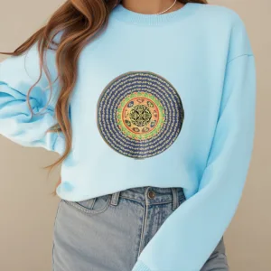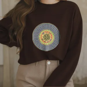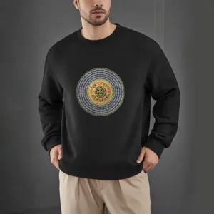 “Blending traditional Buddhist motifs with modern style. this sweatshirt aims to inspire inner peace and spiritual connection. By honoring the wisdom of Buddhism through accessible. contemporary design. we hope this piece brings joy and spiritual strength to all who wear it.”