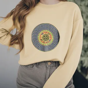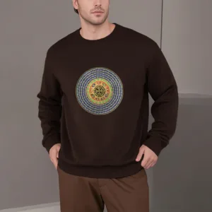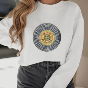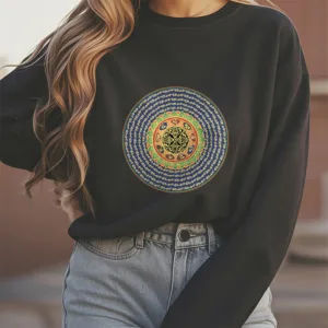 108 Om Mani Padme Hum Polyester Sweatshirt features the sacred Sanskrit mantra repeated 108 times. symbolizing compassion. balance. and spiritual growth. Crafted from fleece-lined polyester. this sweatshirt provides warmth and comfort for meditation or mindfulness practices. The mantra encourages inner peace and alignment. fostering a deeper connection to universal energy. It serves as a meaningful reminder of compassion and harmony in life.