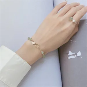 Mythstone 14k Gold Plated Hetian Jade Beaded Prosperity Chain Bracelet