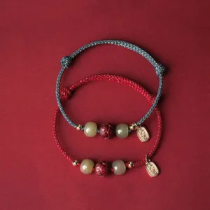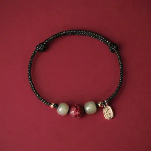 - Material: Hetian Jade. Cinnabar. 14K Gold Plated. String