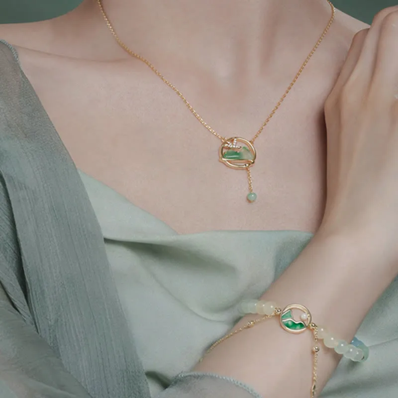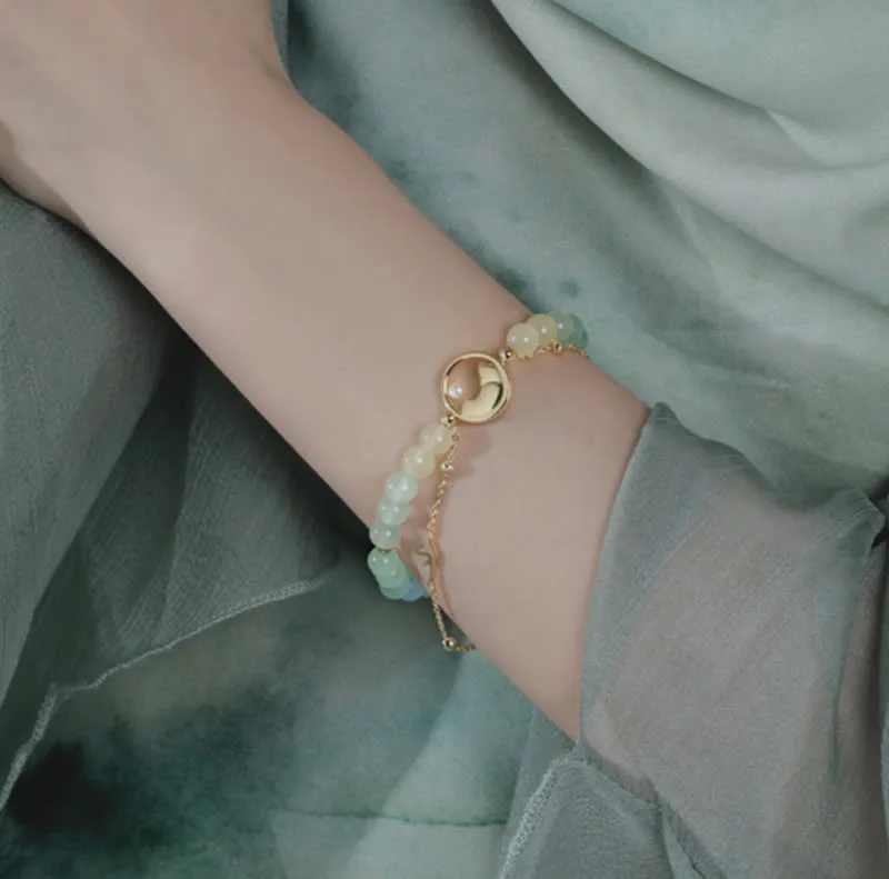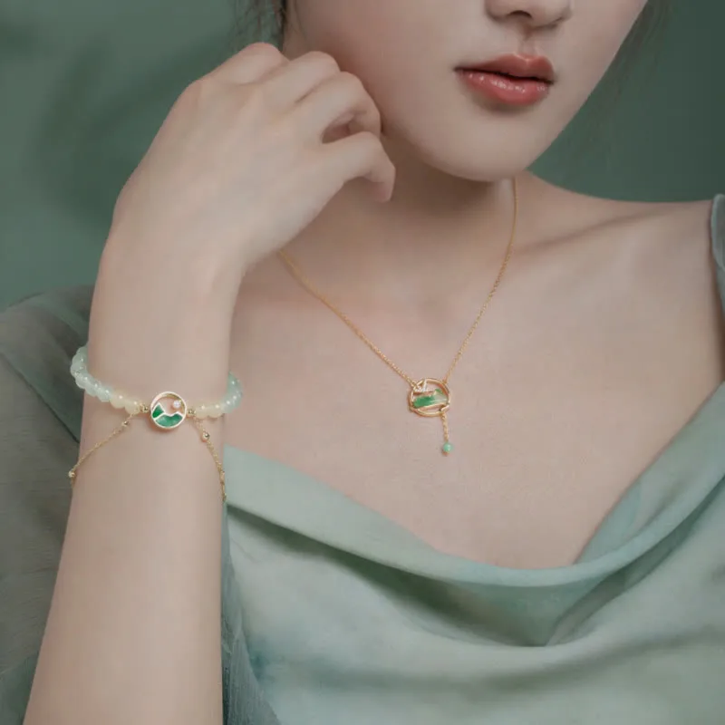 - Material: Necklace: Jade. 18K Gold Plated Copper. Zircon; Bracelet: Jade. Chalcedony. Tridacna Stone Bead. 18K Gold Plated Copper