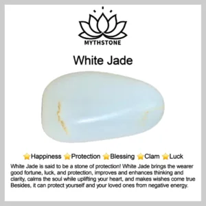 White Jade is said to be a stone of protection! White Jade brings the wearer good fortune. luck. and protection. improves and enhances thinking and clarity. calms the soul while uplifting your heart. and makes wishes come true. Besides. it can protect yourself and your loved ones from negative energy.