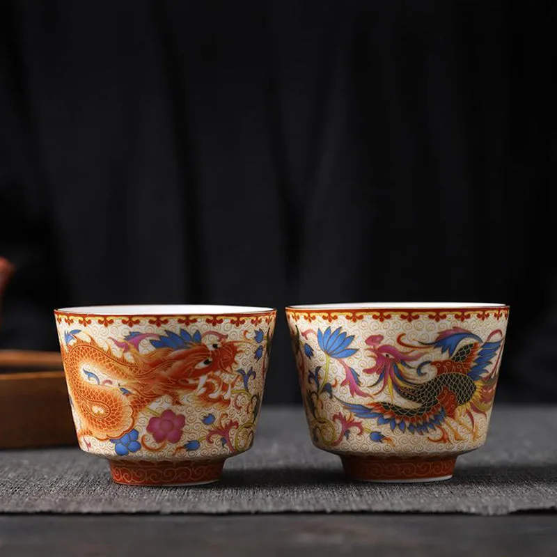 Mythstone 2Pcs Dragon Phoenix Ceramic Teacup Kung Fu Tea Cups
