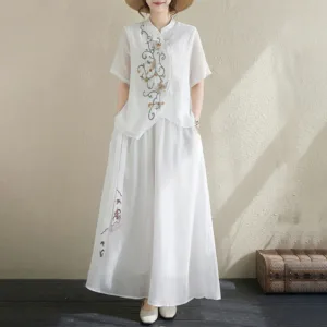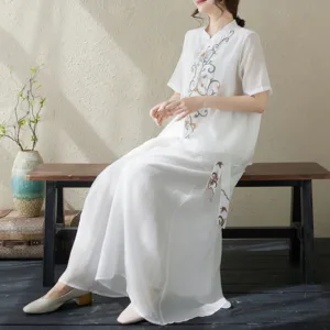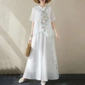 Flower Embroidery Tee and Wide Leg Pants set offers elegance and comfort. This two-piece set features a short sleeve tee with intricate flower embroidery and matching wide leg pants. Made from breathable fabric. it ensures a relaxed fit and ease of movement. Perfect for casual wear or special occasions. this set combines style and functionality for a sophisticated look.