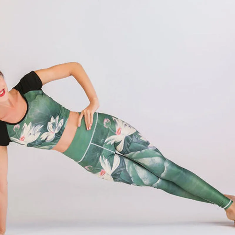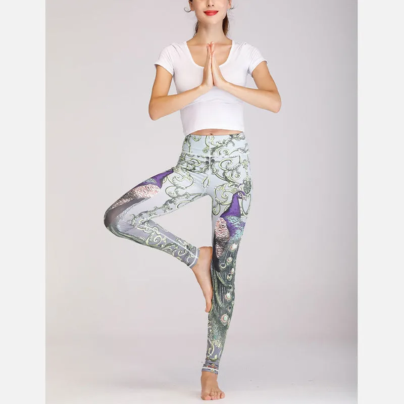 Mythstone 2Pcs Lotus Phoenix Spring Flowers Peacock Print Top Pants Sports Fitness Yoga Women’s Yoga Sets