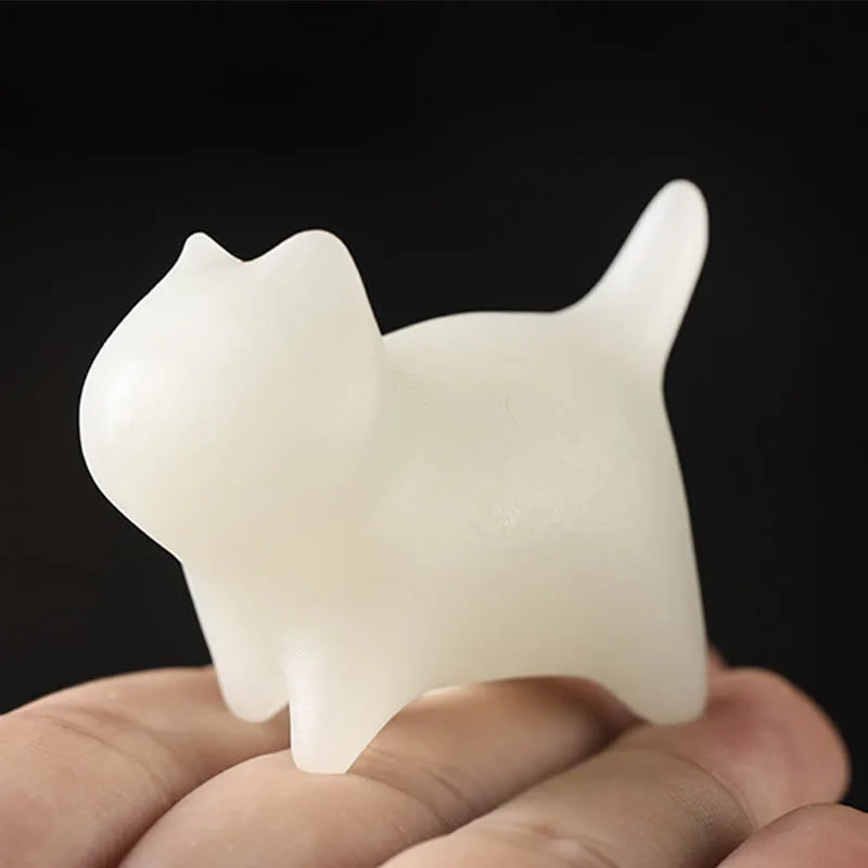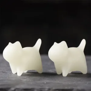 The cute little kitten is pressed and carved from luminous stone powder and polished manually.