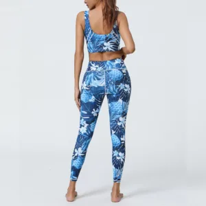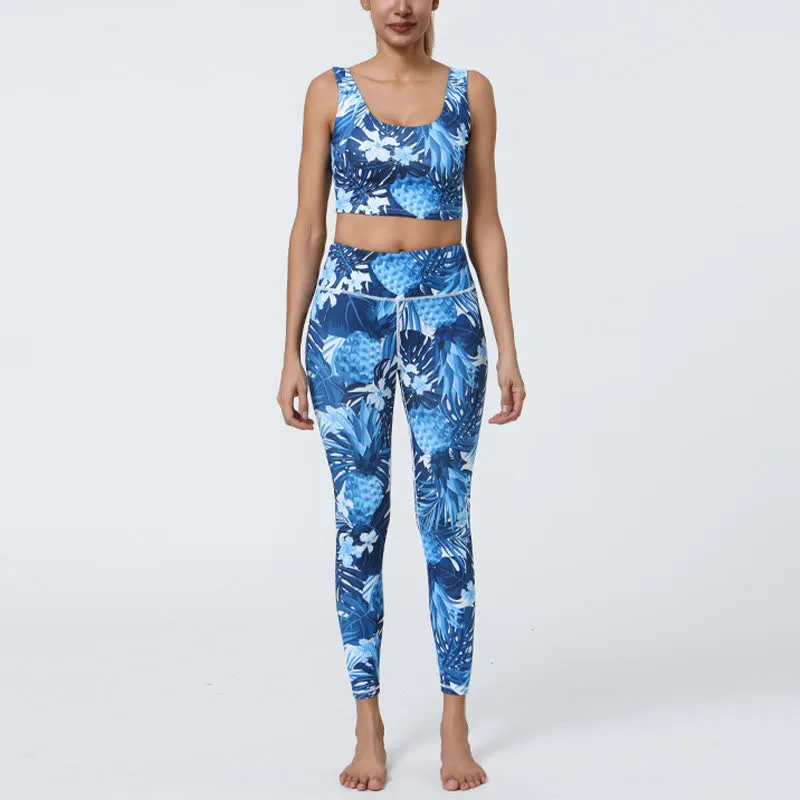 Pineapple Grass Leaves set includes a crop tank bra and high-waist leggings. both featuring vibrant pineapple and grass leaves prints. Crafted from flexible. breathable fabric. this 2-piece set ensures comfort and support during workouts. Ideal for yoga and fitness enthusiasts. it offers a unique blend of style and functionality. perfect for adding a touch of tropical flair to your exercise routine.
