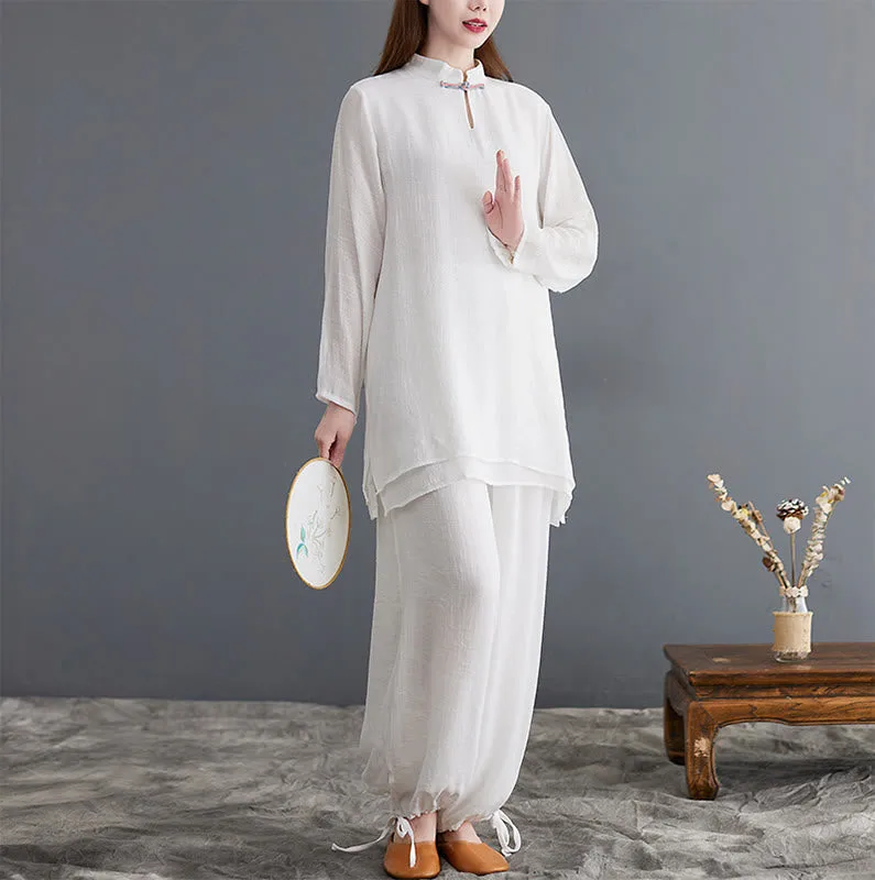 - COMFORTABLE WEARING: Soft and Relax. In spiritual practices such as Yoga. Tai Chi. Qi Gong. Zen Meditation. and Praying. the uniform does fit close to the body and makes the practitioner feel comfortable. meeting the requirements of spiritual practicing.