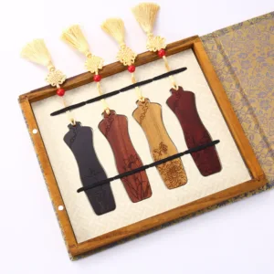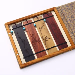 The “Four Seasons Wood Bookmarks” set features elegant designs of plum. orchid. bamboo. chrysanthemum. and Peking Opera masks. Presented in a gift box. these bookmarks are perfect for literary enthusiasts and admirers of traditional Chinese art. offering a unique and cultural touch to their reading experience.
