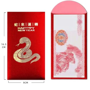 Year of the Snake Red Envelope features a beautiful golden snake design and Chinese New Year greetings. Crafted from premium paper. these red envelopes are perfect for gifting lucky money during the 2025 New Year celebrations. The symbolic snake represents wisdom. prosperity and good fortune. making these envelopes a meaningful gift to offer blessings for the upcoming year.