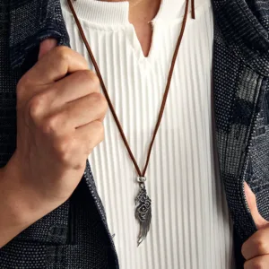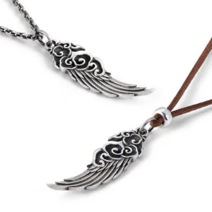 Auspicious Clouds Wing Pendant Necklace features a 925 sterling silver pendant intricately designed with hollowed Auspicious clouds and a wing. symbolizing protection and positive energy. Paired with a durable cotton rope. this necklace promotes balance and spiritual connection. The lightweight design makes it comfortable for daily wear. while its symbolic elements encourage mindfulness and grounding in your spiritual journey.