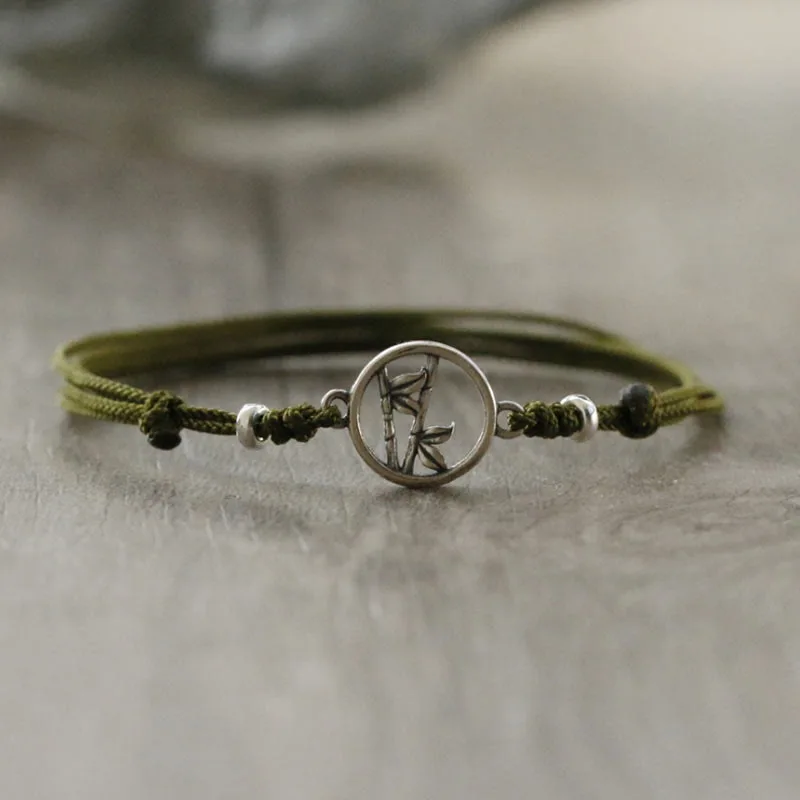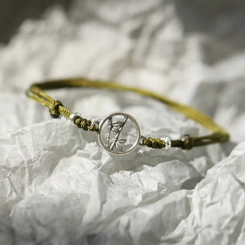 Silver Bamboo String bracelet showcases a delicate bamboo design crafted from high-quality sterling silver. symbolizing resilience and good fortune. The bracelet is complemented by a vibrant luck string. making it a meaningful accessory that embodies strength and prosperity. Its elegant and symbolic design makes it a thoughtful choice for those seeking positive energy.