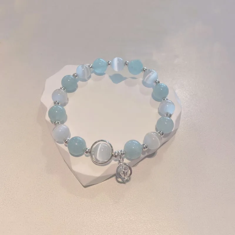 Unearth tranquility and calmness through our Mythstone Cat’s Eye Aquamarine Charm Bracelet. Expertly fashioned from 925 Sterling Silver and Copper Plated Sterling Silver. it encourages healing. soothing viewpoints. and wards off negativity. Embrace the uplifting energy and distinct significance of this handcrafted. organic creation.