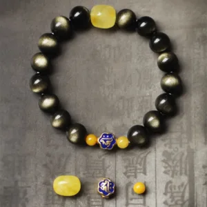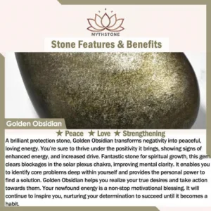 Gold Obsidian is a kind of Obsidian that contains a bright golden substance. Obsidian is considered to have the effect of resisting. aMythstoneorbing negative energy and protecting the body. and is often used in divination calculations and predicting the future. The effect of gold sheen Obsidian is stronger than Obsidian. it can enhance vitality. restore people’s spirit. and can also dissolve negative energy.
