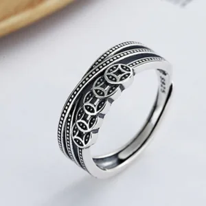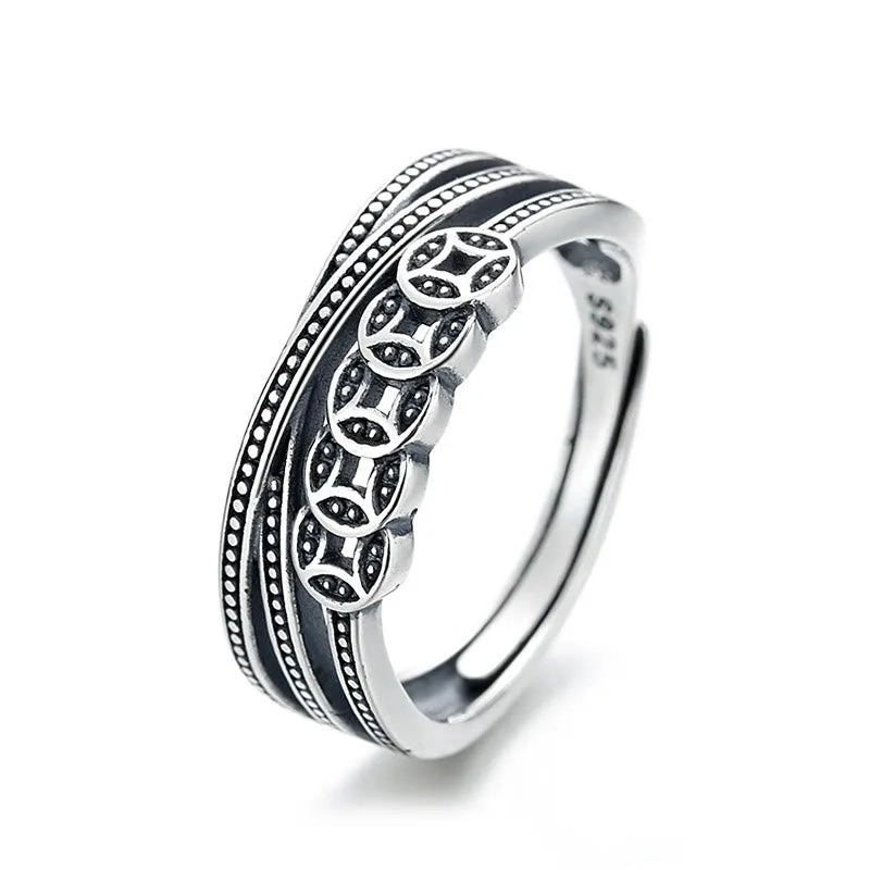 Sterling Silver Copper Coins ring symbolizes wealth and protection. combining the power of ancient coins with the purity of silver. The copper coins are believed to ward off evil spirits and bring prosperity. while silver provides balance and calm. This adjustable ring serves as a talisman for health. longevity. and happiness. offering a timeless connection to spiritual and physical well-being.