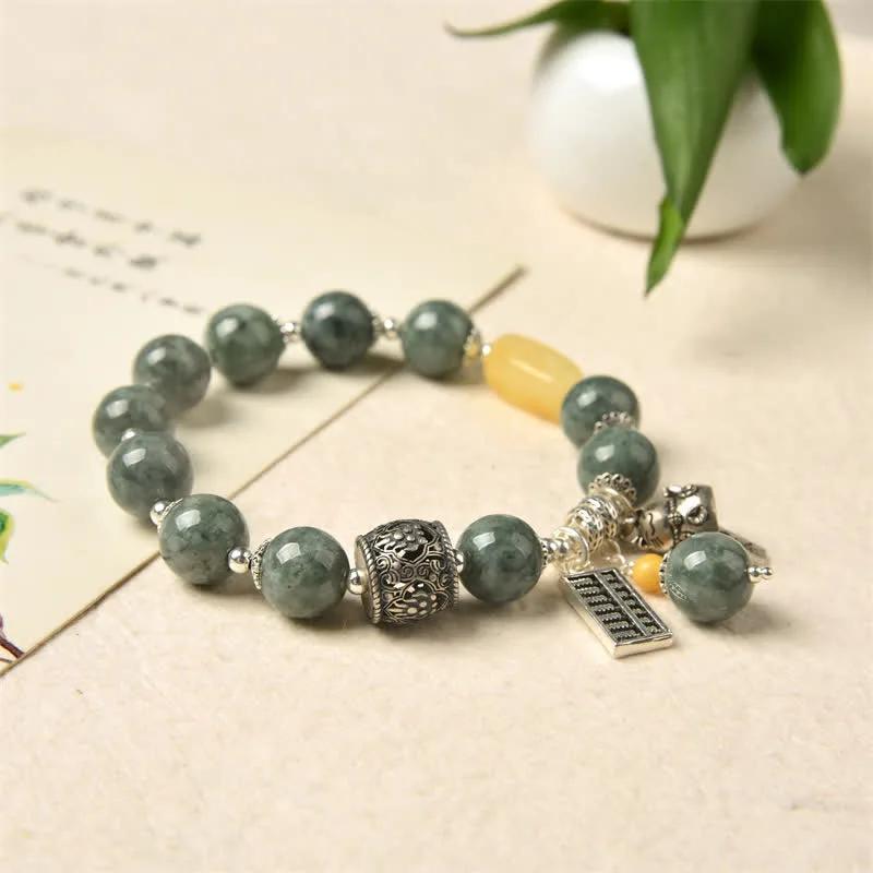 Discover a fusion of luck and style in our 925 Sterling Silver Cyan Jade Amber Abacus Lucky Cat Success Bracelet. The combination of cyan jade and amber channels luck and positivity. while the abacus and lucky cat symbols enhance success. Crafted with 925 sterling silver. this bracelet not only brings good fortune but also adds a touch of charm and elegance to your journey toward success.