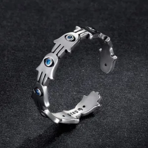 The Hamsa is an ancient amulet symbolizing the Hand of God. In all faiths. it is a protective sign. The whole point of the Hamsa hand is to protect the owner against the evil eye. The eye in it repels the evil eye. It brings its owner happiness. luck. health. and good fortune. Either hamsa hand can be worn with the fingers pointing up or down. When Hamsa Hand is up. it is believed to offer its owner protection from the negative. vile thoughts or emotions. and the evil eye. When Hamsa Hand is down. it means happiness. peace. and prosperity because this style invites positive things into your life.