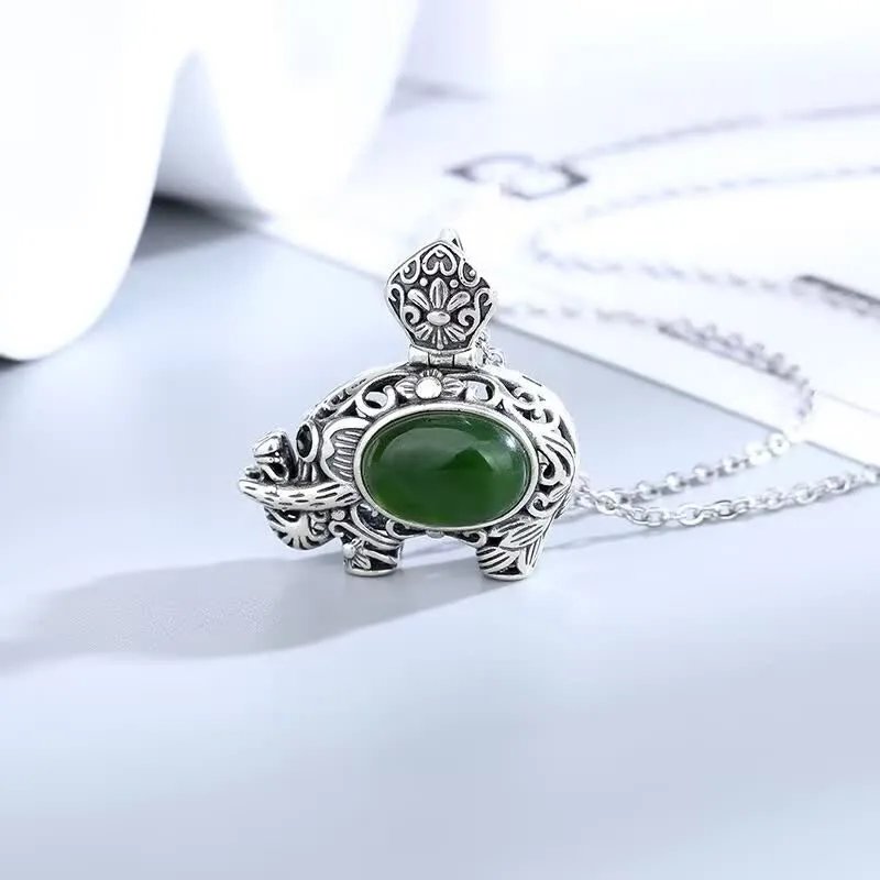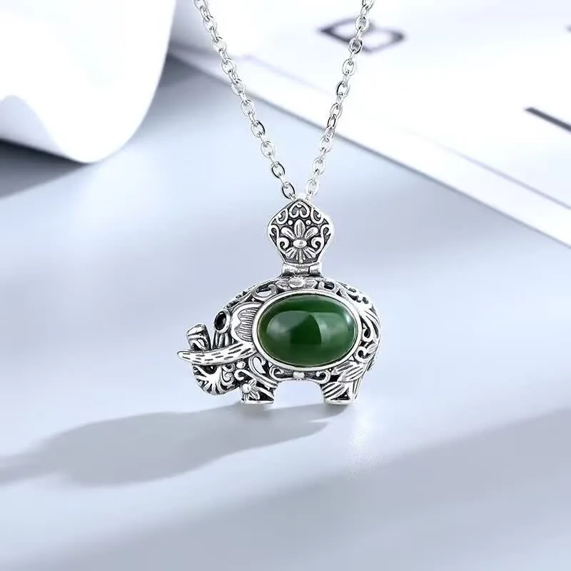 Discover the embodiment of success and wisdom with our Hetian Cyan Jade Elephant Necklace Pendant. This exquisite piece combines the serene beauty of Hetian Cyan Jade with the symbolic power of the elephant. Representing strength and achievement. this pendant serves as a reminder of your journey towards success and empowers you with its harmonizing energy.
