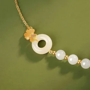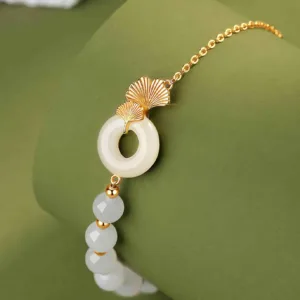 Be the first to review “Mythstone 925 Sterling Silver Hetian White Jade Peace Buckle Ginkgo Leaf Luck Bracelet”