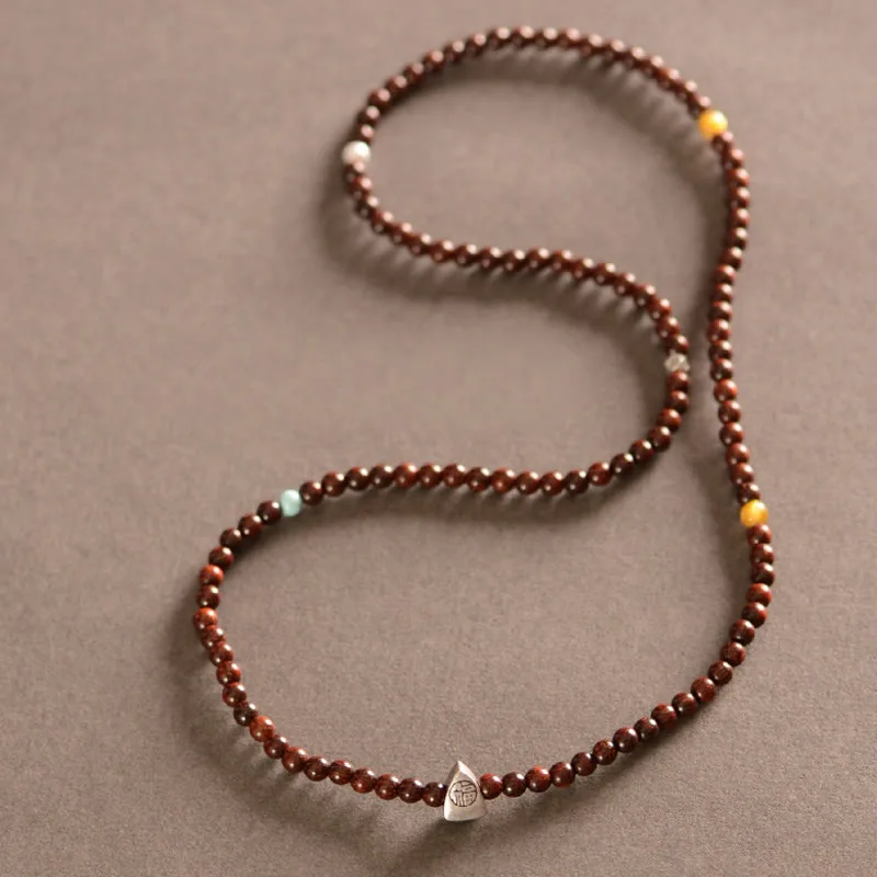 - Material: Small Leaf Red Sandalwood. Tiger Eye. Turquoise. Pearl. 925 Sterling Silver