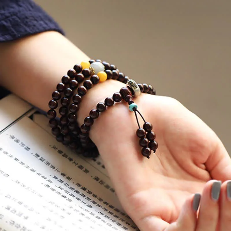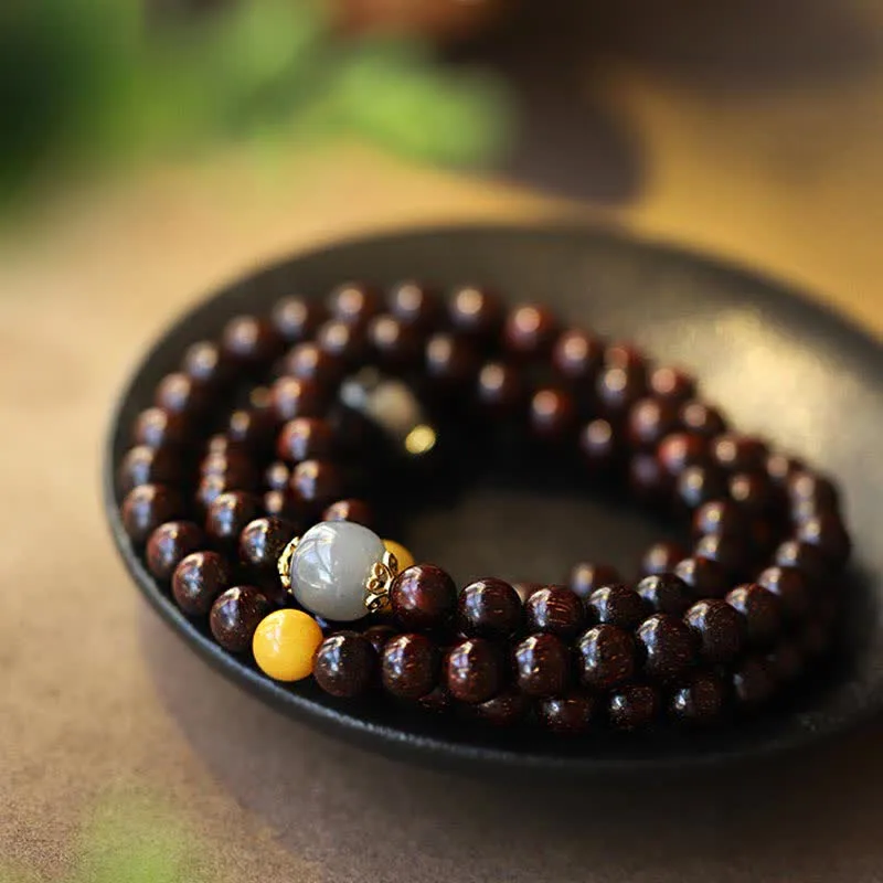 - Material: Small Leaf Red Sandalwood. Hetian Gray Jade. Amber. Turquoise. 925 Sterling Silver