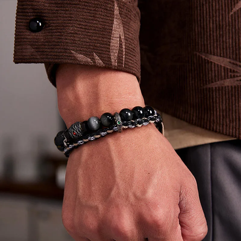 - Material: Lava Rock. Eagle’s Eye Stone. 925 Sterling Silver. Sliver. Silver Plated Gold. Black Agate. Cotton Rope