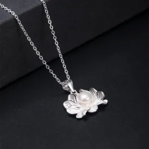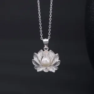 Elevate your style with the Mythstone 925 Sterling Silver Lotus Flower Pearl Wealth Necklace Pendant. The lotus flower symbolizes purity and enlightenment. while the pearl embodies wealth and sophistication. This pendant combines elegance and prosperity. making it a meaningful accessory that enhances both your look and your aura.