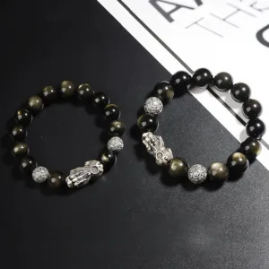 The Mythstone 925 Sterling Silver Natural Gold Sheen Obsidian PiXiu Wealth Protection Bracelet offers an exquisite blend of craftsmanship and natural beauty. Crafted with genuine gold sheen Obsidian and sterling silver. it’s a stylish accessory for those seeking both protection and elegance. Ideal for individuals looking to enhance their personal style with a touch of spirituality.