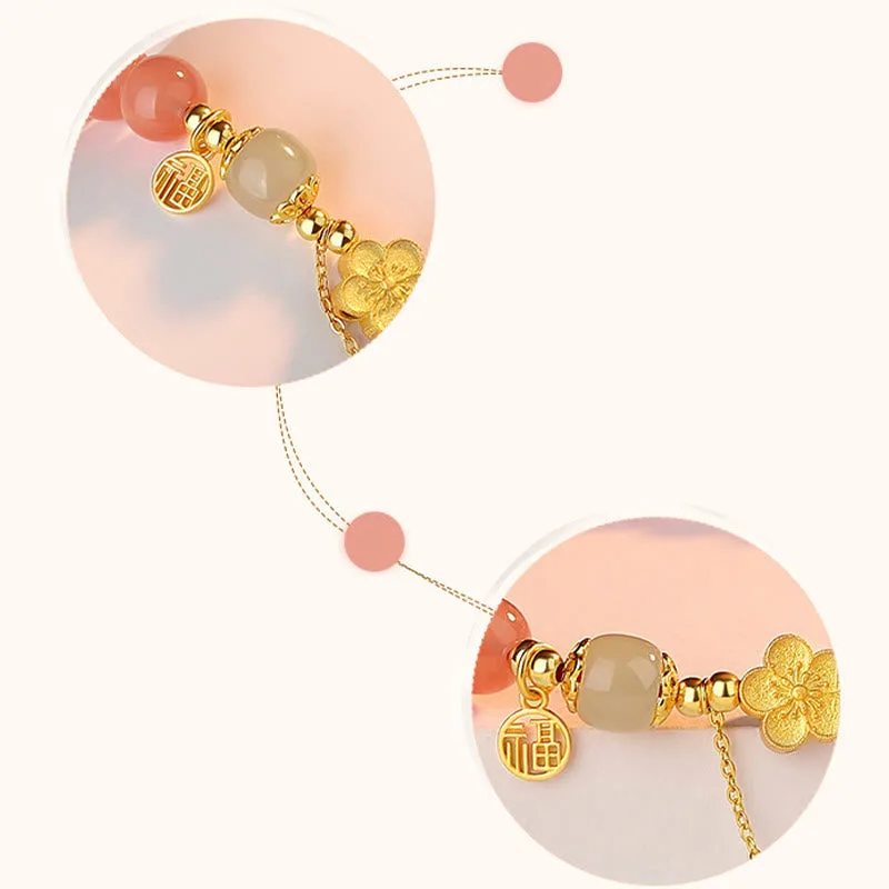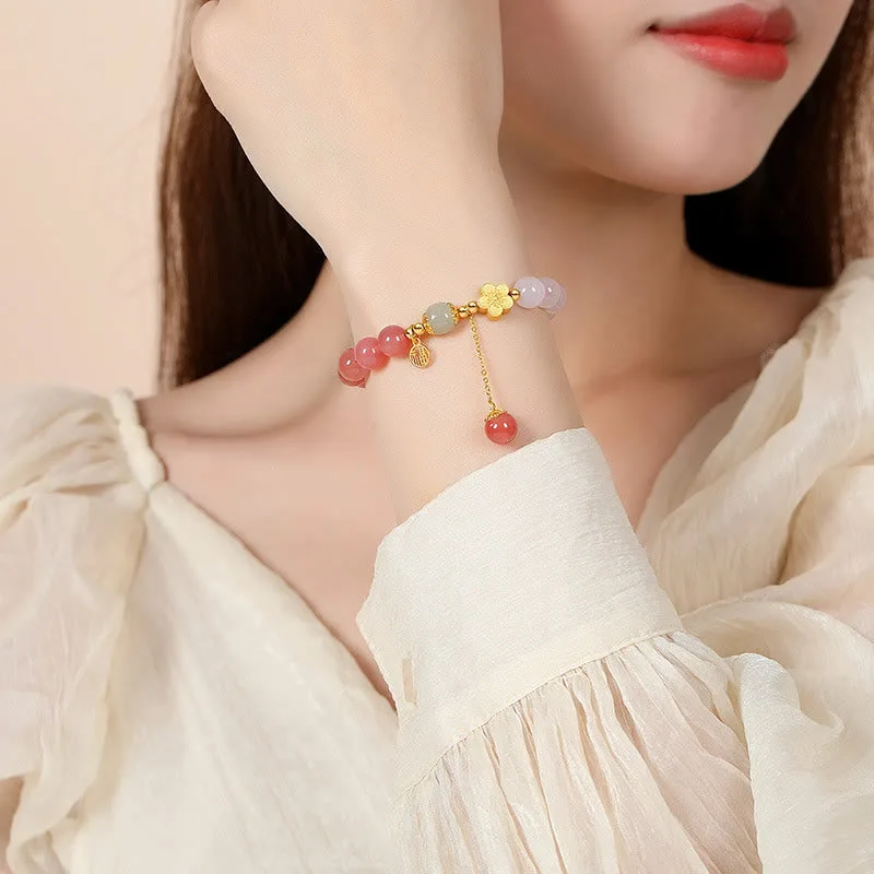 Mythstone 925 Sterling Silver Natural Gradient Agate Hetian Jade Fu Character Peach Blossom Flower Fortune Bracelet