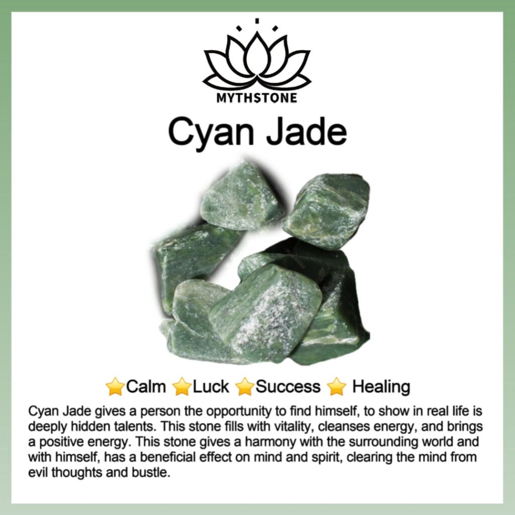 Cyan Jade gives a person the opportunity to find himself. to show in real life is deeply hidden talents. This stone fills with vitality. cleanses energy. and brings positive energy. This stone gives harmony with the surrounding world and with himself. has a beneficial effect on mind and spirit. clearing the mind from evil thoughts and bustle.