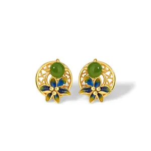 - Material: Hetian Cyan Jade. 925 Sterling Silver; Earring Posts Metal Part: 925 Sterling Silver Posts