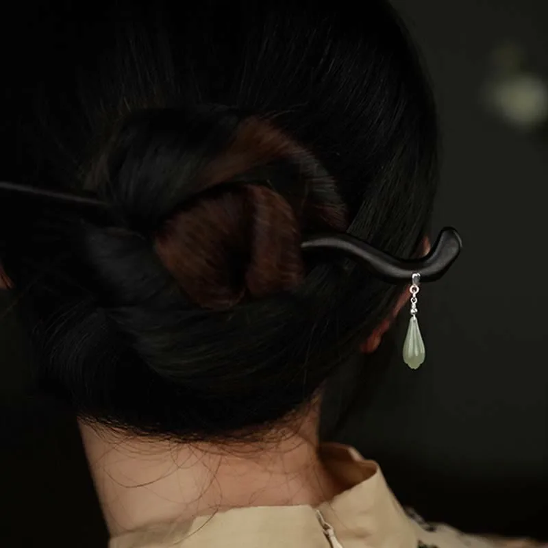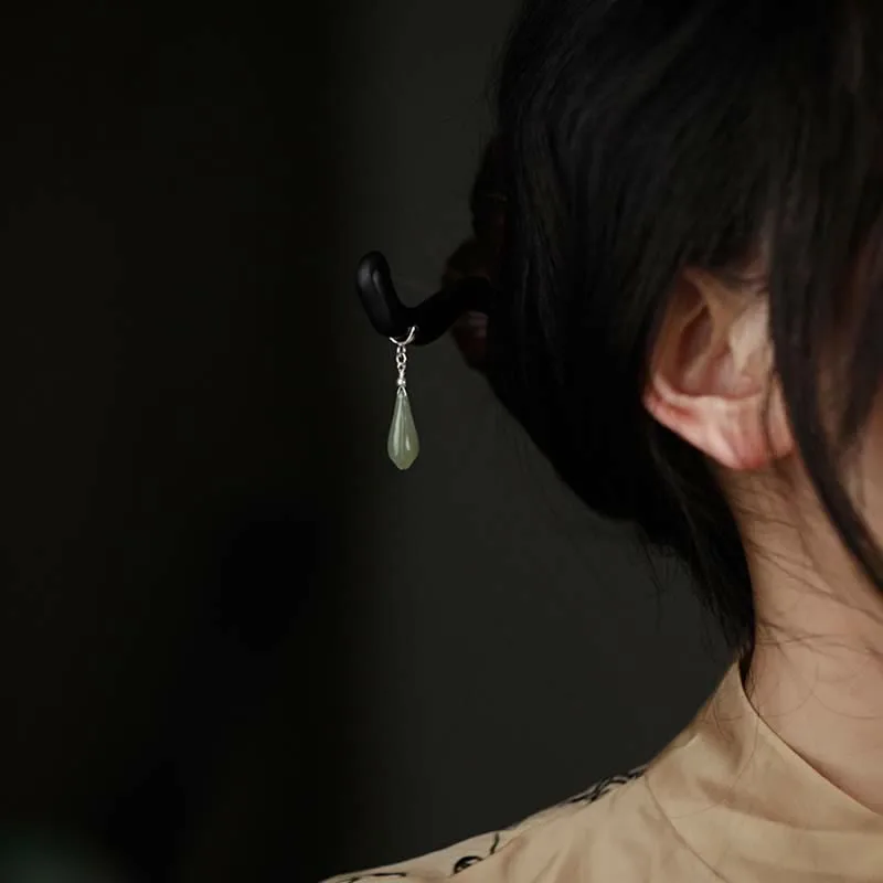 - Material: Hetian Jade. 925 Sterling Silver. Ebony Wood