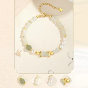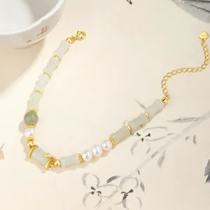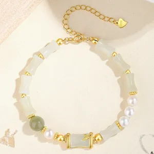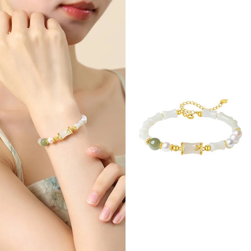 - Size: Hetian White Jade 17.5*8mm. White Jade Bamboo 10*5.9mm. Cyan Jade 8mm. Pearl 5.5-6mm