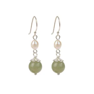 Mythstone 925 Sterling Silver Natural Pearl Jade Wisdom Earrings