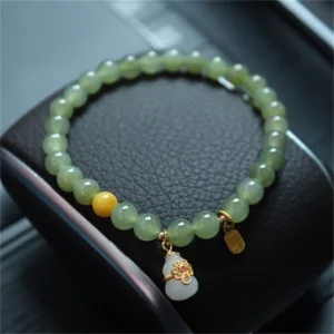 Hetian Jade has always been synonymous with the best nephrite. The hetian jade is popularly used to realize wishes and dreams. It gives the owner the power to strengthen their wishes. The wearer of the hetian jade bracelet attracts positivity and wellness throughout their lives.
