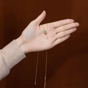 - Material: Hetian White Jade. Red Agate. 925 Sterling Silver. 925 Sterling Silver Plated Gold