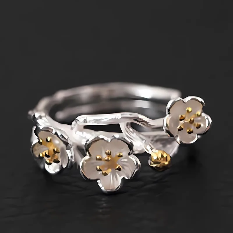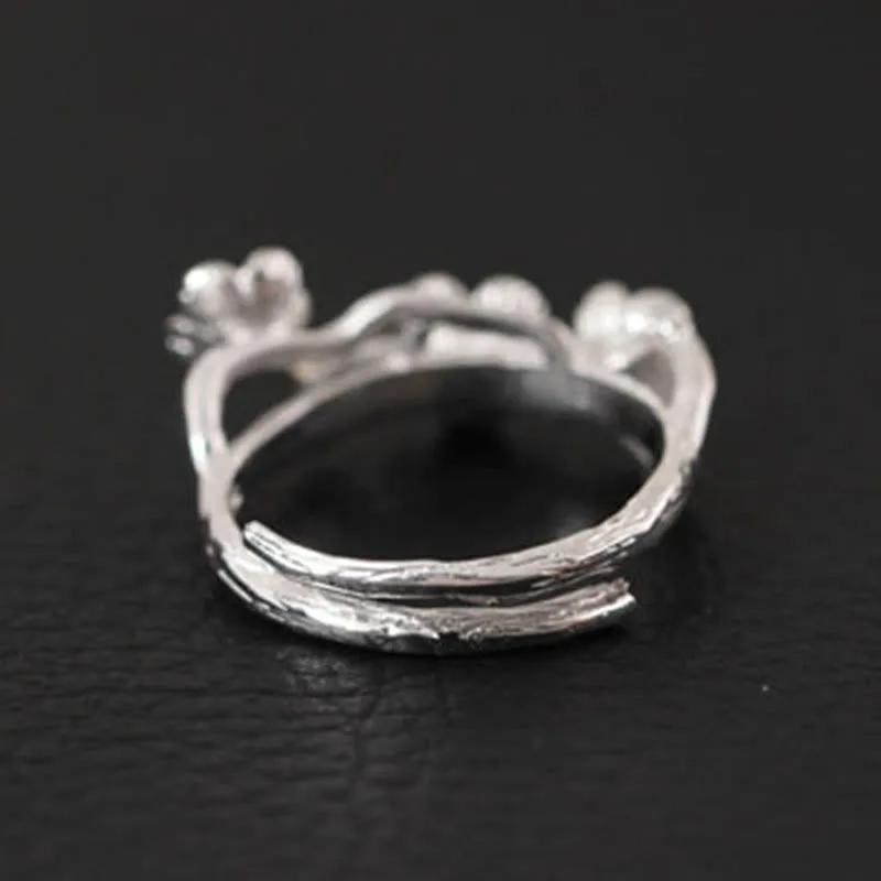 Sterling Silver Plum Blossom Ring features an exquisite design resembling tree branches adorned with delicate plum blossoms. Crafted from high-quality 925 sterling silver. this ring symbolizes resilience and renewal. embodying tranquility and harmony. Its artistic representation of nature promotes a sense of peace. making it a meaningful accessory for those seeking to connect with their inner strength and appreciation for life’s beauty.