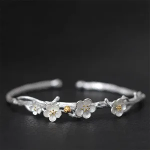 Discover tranquility and spiritual harmony with the Mythstone 925 Sterling Silver Plum Flower Blessing Bracelet. Crafted from high-quality silver. this adjustable bangle carries the power of calmness. balance. and protection against evil spirits. Embrace positive energy and enjoy the blessings it brings.