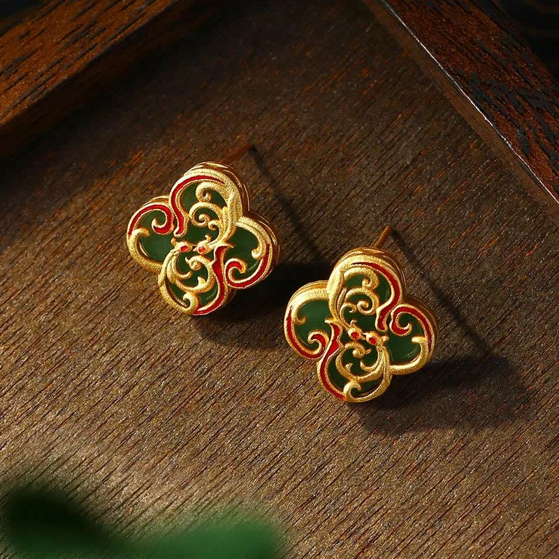 - Material: Jade. Copper Metal. 925 Sterling Silver Posts