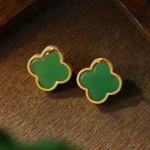 Jade Four Leaf Clover Earrings feature a beautifully designed four-leaf clover symbol crafted from sterling silver and jade. The jade clover represents luck and positive energy. while the sterling silver posts ensure durability and elegance. These earrings are a perfect blend of meaningful design and high-quality materials. making them an ideal choice for those seeking good fortune and protection.
