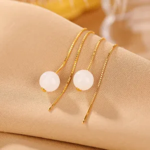 Be the first to review “Mythstone 925 Sterling Silver White Jade Beaded Happiness Drop Earrings”