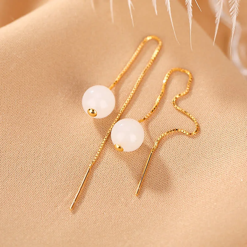 Mythstone 925 Sterling Silver White Jade Beaded Happiness Drop Earrings