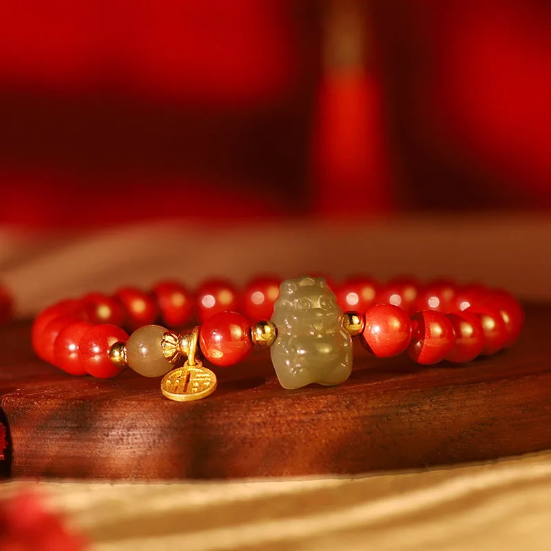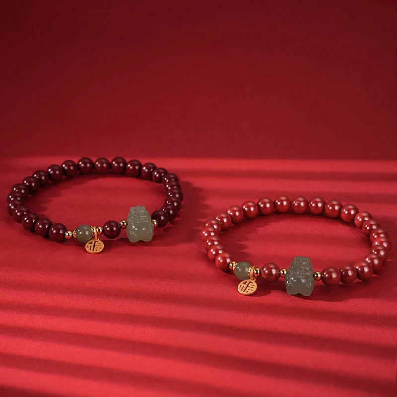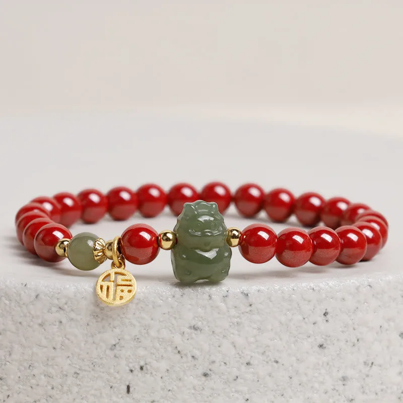 - Bead Size: Cinnabar/Hetian Jade 6mm. Dragon 9.5*12.5mm. Fu Character 6.2mm