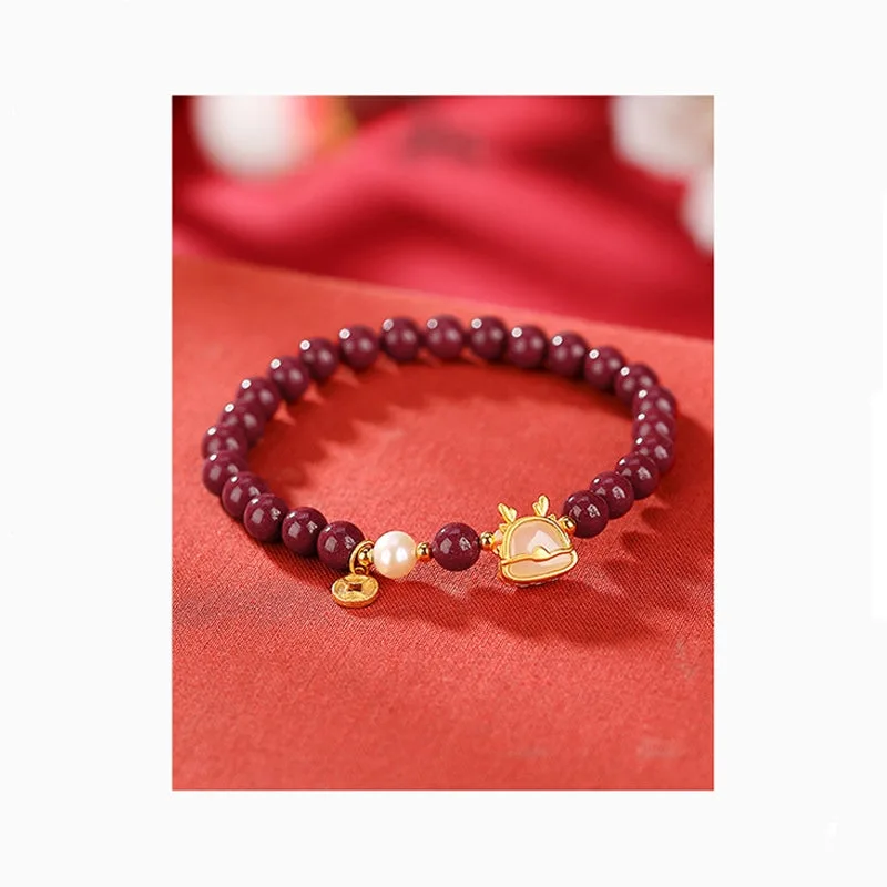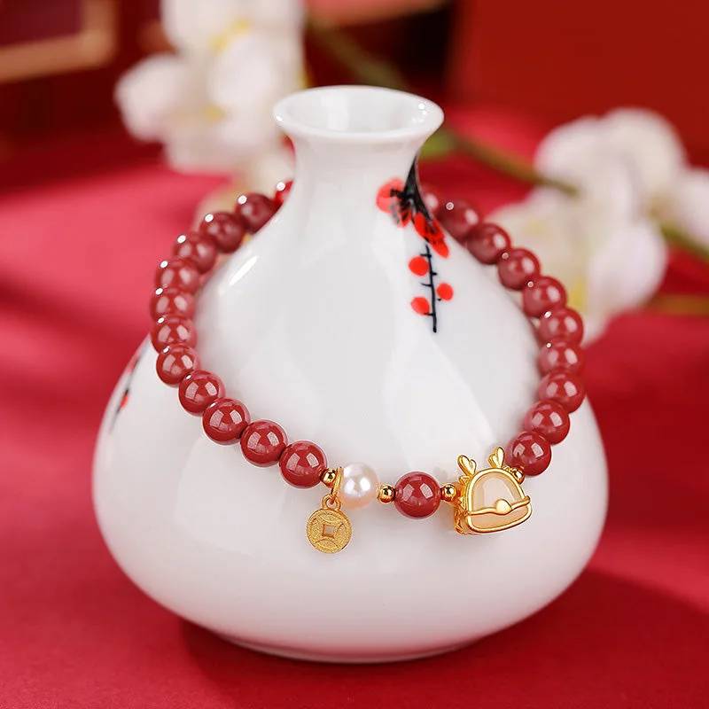 - Bead Size: Cinnabar/Pearl 6mm. Hetian White Jade Dragon 8*7mm