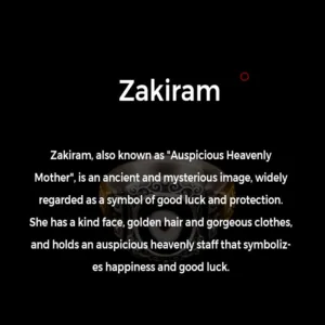 Zakiram is a guardian deity whose image symbolizes the power of guardianship and protection of faith and can protect practitioners from evil and misfortune.